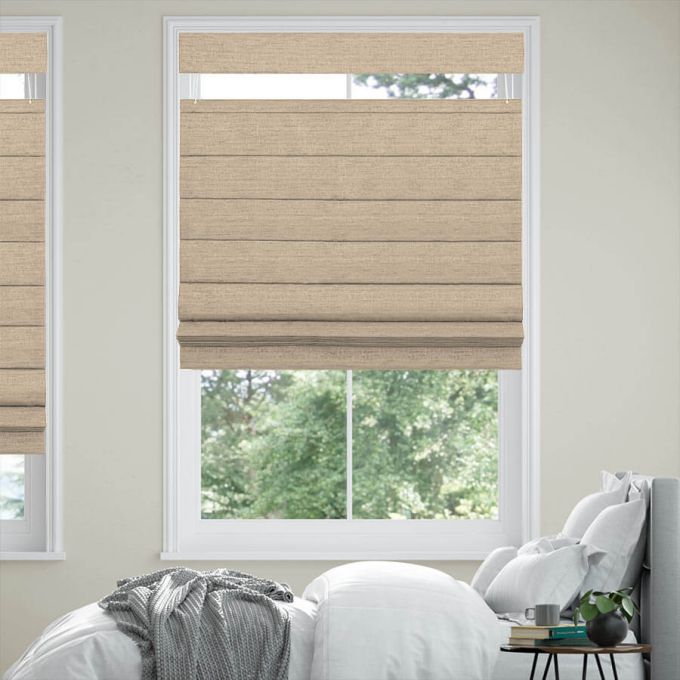 Roman shades are a classic and elegant window treatment option that can add a touch of sophistication to any room. These shades are made from a single piece of fabric that is horizontally pleated, giving them a sleek and streamlined look. Roman shades can be customized to fit any window size or shape, and are available in a wide range of fabrics, patterns, and colors to suit your personal style and decor. With their soft and graceful folds, Roman shades can create a warm and inviting atmosphere in any space. At our company, we offer a variety of Roman shades to choose from, and our experienced staff can help you find the perfect option to elevate your home or business.