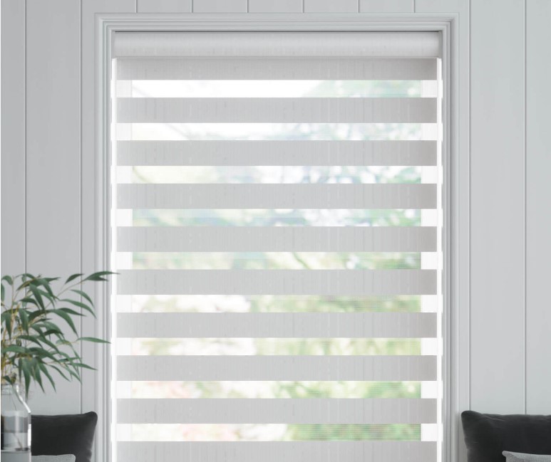 Zebra blinds, also known as layered or dual shades, are a popular and stylish window treatment option for modern homes and businesses. These blinds feature alternating sheer and solid panels that can be adjusted to provide varying levels of light control and privacy. With their unique design, zebra blinds offer a combination of functionality and aesthetic appeal that makes them a versatile option for any room or decor style. They are available in a range of colors and materials to suit any preference, and can be customized to fit any window size or shape. At our company, we offer a wide selection of zebra blinds to choose from, and our knowledgeable staff can help you find the perfect option to enhance your space.